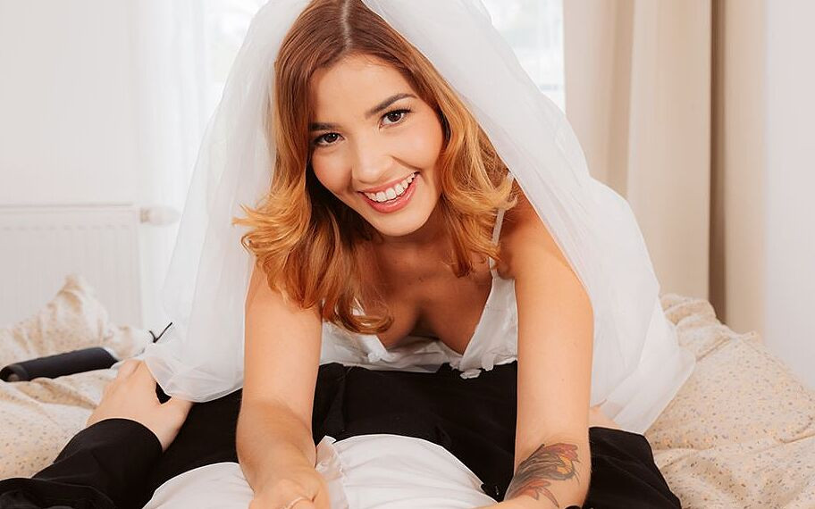 As the bride, Agatha Vega is in front of you, wearing her wedding dress. She is dancing and having fun, and her smile is lightening the room. She moves the veil away to reveal her face and spins so you can see how good the dress fits on her. She puts a leg on the bed and caresses it in a sexy way, she wants to turn you on because she thinks that you are very sexy on a suit. She starts to caress your dick over your trousers. Then, she unbuttons your shirt. After, she takes off her dress. Now, it is the time of a blowjob. She introduces your big dick inside her mouthand licks it in the sexiest way. She puts on top of you, doing 69 position, and you touch her pussy while she keeps masturbating you. The foreplay is over: let’s fuck! You have sex with her in different positions like missionary, cowgirl or doggy, admiring her body and feeling her wet pussy against your dick while she gets more and more pleasure and so you do.