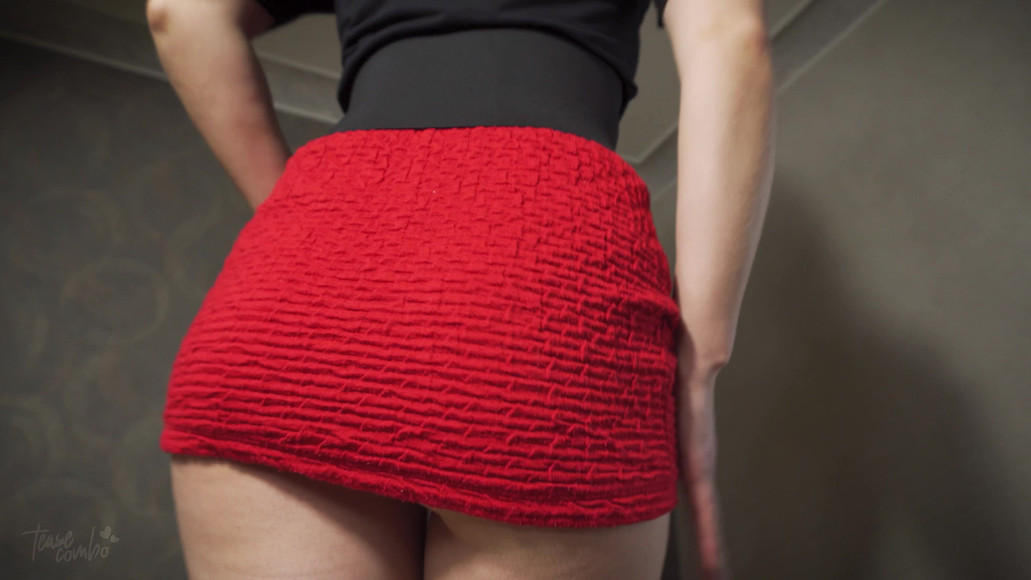 Tease goes dancing in her short tight red dress. The camera is below pointing up at her as she towers over you and you look under my dress. She knows there is someone peeking up under her skirt as she shakes her perfect ass in that tight dress. There is a lot to see underneath her skirt.